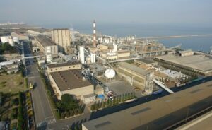 電気銅を製錬する東予工場(住友金属鉱山提供)