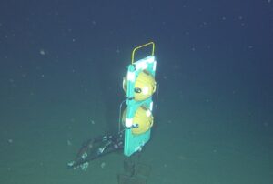 他方で、環境モニタリング手法の検証では、「ちきゅう」に備えられた作業用ROV(遠隔操作型無人探査機)に4Kビデオカメラを搭載して採鉱サイトの状況を記録するとともに、「江戸っ子1号」(※6)COEDO型(図7)を採鉱サイトの北50mと200mの地点にそれぞれ設置し、海底堆積物の揚泥作業に伴う海底の環境モニタリングを行いました。「江戸っ子1号」COEDO型により撮影された映像には、採鉱装置の着底中に回避した魚類が装置の揚収により復帰する様子が確認できております。また、船上では、海産試験株を用いて汚染リスクを判定する洋上バイオアッセイ(※7)及び現場表層環境の健全性を監視するファイトアラートシステム(※8)による環境モニタリングを実施し、周辺環境への影響を船内の実験室でもリアルタイムで簡便に評価できることが分かりました。(図8